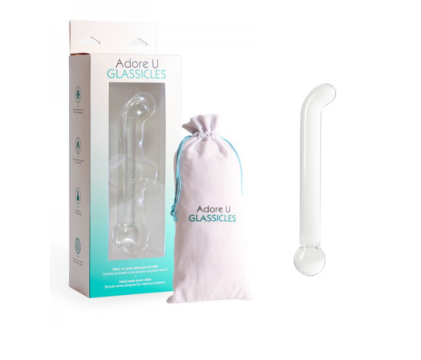 L'élégance des Glassicles réchauffera tous vos sens. Leurs formes uniques, leurs allures cristallines et leurs douceurs épatatantes transformeront vos moments intimes en expériences mémorables. En plus d'être conçus à la main, les Glassicles sont fabriqués de pyrex non poreux très facile d'entretien et hypoallergénique. Il y a une possibilité de créer un effet stimulant en plongeant les glassicles sous l'eau froide ou chaude, les placer dans le four micro-ondes durant 5 à 10 secondes ou refroidissez- les dans le frigo ou dans un sceau à glaçons. ,Une pochette est incluse pour faciliter le rangement.