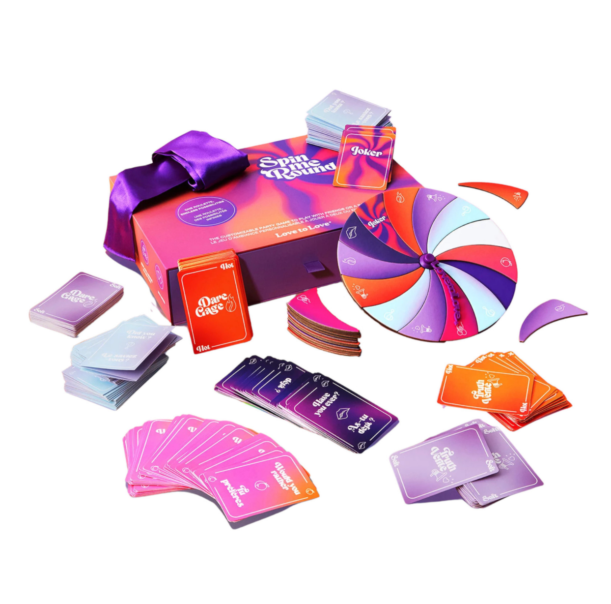 Découvre Spin me Round, le jeu idéal pour animer tes soirées entre ami·e·s ou pimenter tes soirées tendresse. Que tu connaisses tes partenaires de jeu depuis une nuit ou toute une vie, on te promet des vérités croustillantes, des défis osés et des instants torrides. Selon tes humeurs, tu n’as qu’à choisir (ou pas) entre sexy, fun ou ludique. Ici, tout est permis dans le respect et le consentement. Fais tourner la roue et laisse-toi porter, sans perdant ni gagnant… juste du bon temps !